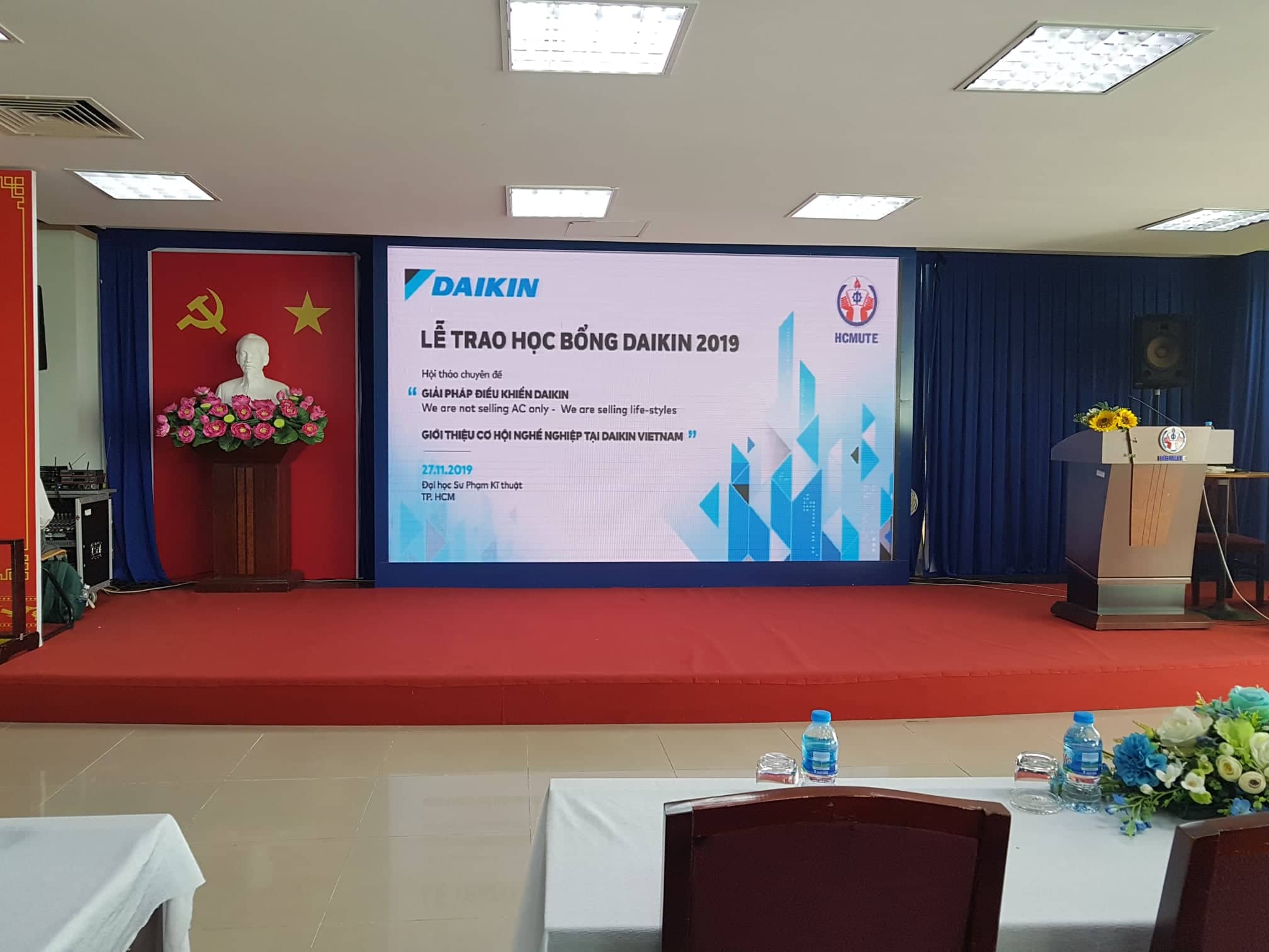 Ngoài ra, tại buổi lễ sinh viên của Khoa còn được học tập các kiến thức về điều hòa không khí thế hệ mới do các anh Nguyễn Hoàng Dũng đến từ phòng kinh doanh giải pháp và tiếp đến được gặp gỡ, giao lưu với cựu sinh viên Trường Đại Học Sư Phạm Kỹ Thuật Thành Phố Hồ Chí Minh hiện đang học tập và làm việc tại Công ty Daikin Việt Nam.