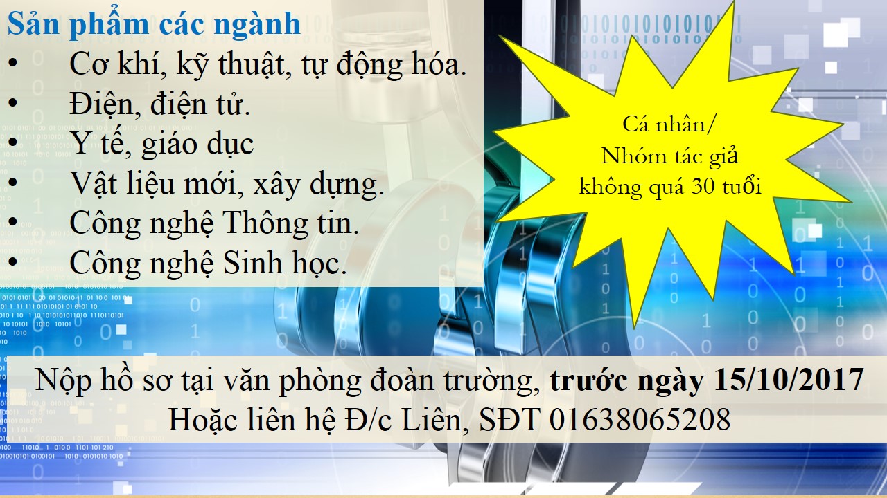Kính mời quý thầy cô và các bạn sinh viên có sản phẩm tham gia dự thi, viết Phiếu đăng ký dự thi, nộp hồ sơ (theo yêu cầu trong thể lệ -