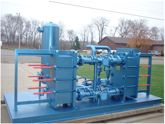 A liquid-to-liquid cooling system is an ideal fit for this situation. It uses the well water on one side of an intermediate heat exchanger and a coolant such as glycol and water on the other side of the intermediate heat exchanger in a closed loop to cool the compressor. The heat is exchanged through the intermediate heat exchanger without fouling the heat exchanger/s. Fouling of the intermediate heat exchanger will likely happen on the well-water side, however, if the intermediate heat exchanger is selected properly it can be taken apart easily and cleaned. The most common intermediate heat exchangers are either plate and frame or shell and tube type. Coolant temperatures of 5 degrees above the plant cooling “water” are possible with a liquid-to-liquid type system. In the well water example above if the well water is available at 55 F the liquid to liquid cooling system is capable of supplying 60 F coolant to the load.
