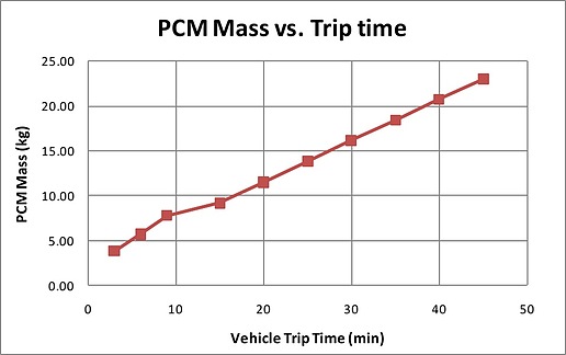Graph shows how PCM mass required is a near-linear function of travel time.