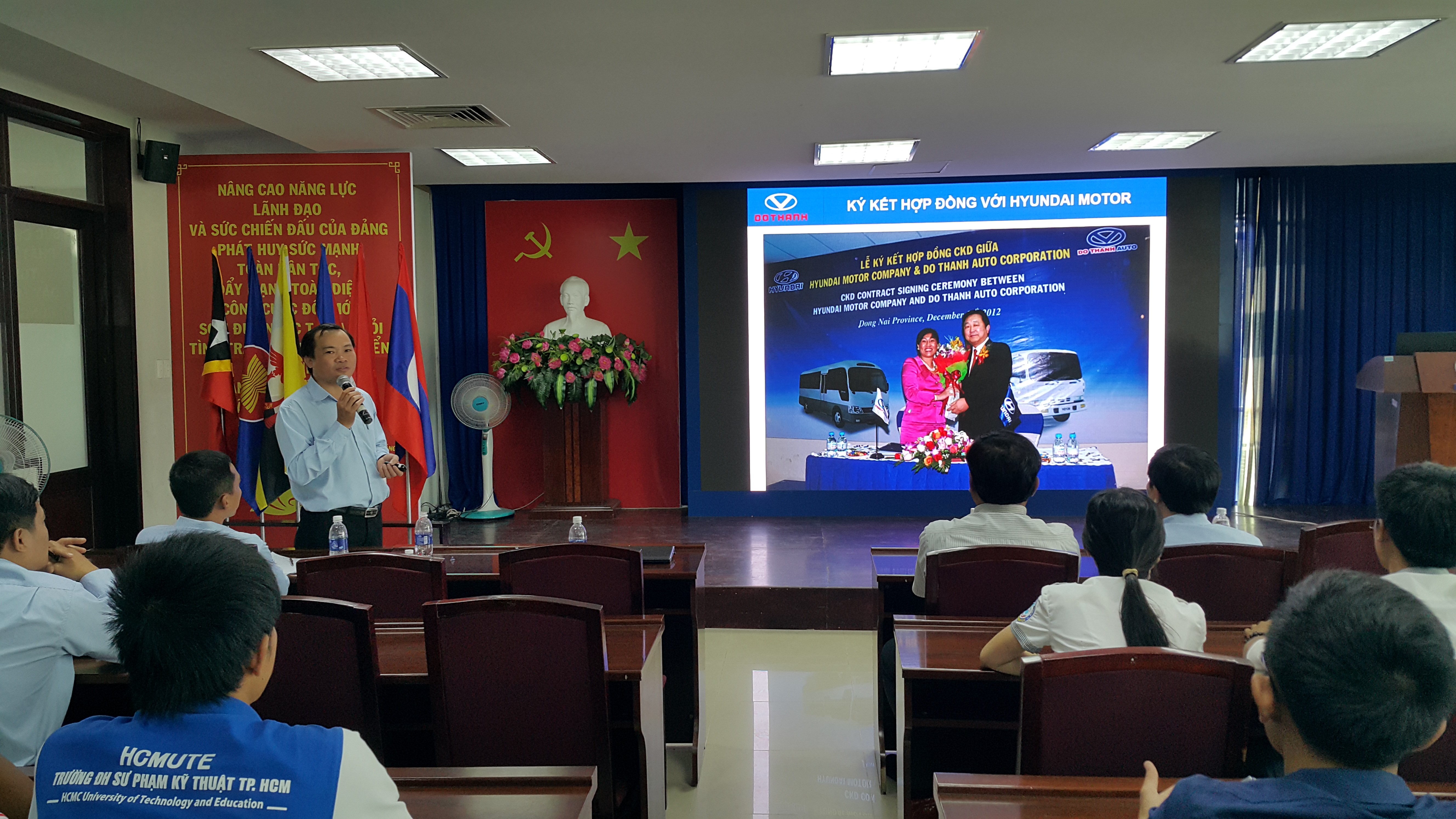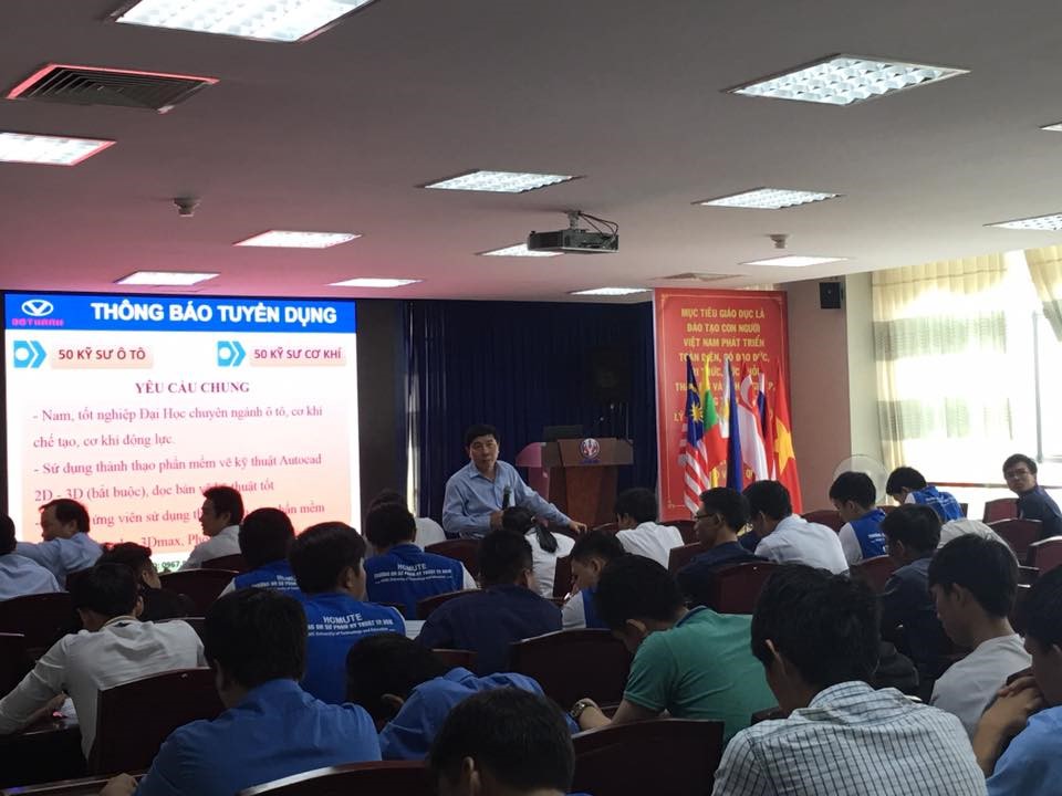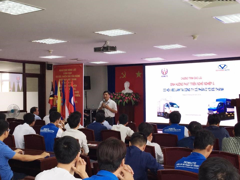 Nhằm góp phần nâng cao tỉ lệ sinh viên ra trường có việc làm ngay và đúng chuyên ngành đào tạo; tạo cơ hội cho các em sinh viên được gặp gỡ, giao lưu với các chuyên gia trong lĩnh vực nhân sự, tìm hiểu và ứng tuyển trực tiếp các vị trí tuyển dụng của Doanh nghiệp, Khoa Cơ khí Động lực, Phòng Quan hệ Công chúng và Doanh nghiệp Trường ĐH Sư phạm Kỹ thuật TP. HCM phối hợp với Công ty Cổ phần Ô tô Đô Thành tổ chức chương trình Định hướng nghề nghiệp và Cơ hội việc làm tại Công ty CP Ô tô Đô Thành vào 07/4/2016 vừa qua, tại Phòng họp 2 - Lầu 6, Tòa nhà Trung tâm. Chương trình đã diễn ra với sự có mặt của đại diện lãnh đạo Công ty CP Ô tô Đô Thành, Ban chủ nhiệm khoa Cơ khí Động lực, Phòng Quan hệ Công chúng và Doanh nghiệp và hơn 150 sinh viên năm cuối của khoa Cơ khí Động lực và khoa Cơ khí Chế tạo máy.