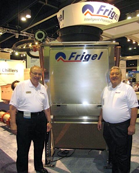 Frigel’s Al Fosco and Lou Zavala (left to right) were presenting the Ecodry 3DK energy and water-saving closed loop adiabatic liquid cooler.