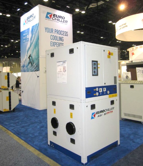 Ecochillers Inc., based in Guadalajara, Mexico and with sales/warehousing in Miami and Laredo, presented their Ecogreen® compact VFDEC Series chillers. Booth representatives told me it had variable speed refrigeration compressors and fan motors allowing clients to do a better job of matching energy consumption with load profiles. The completely electronically-controlled chillers are offered with rotary screw compressors and can be water-cooled or dry coolers with free cooling modules. Visit www.ecochillers.com.