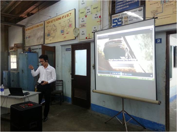 Nhằm mang đến cho sinh viên những kiến thức thực tế về các kỹ thuật, công nghệ mới trên ô tô cũng như môi trường làm việc chuyên nghiệp, ngày 25/10/2014 vừa qua, Bộ môn Điện tử Ô tô, Khoa Cơ Khí Động Lực đã mời anh Nguyễn Hữu Trí - cựu sinh viên của khoa, hiện đang công tác tại phòng dịch vụ của Porsche Việt Nam báo cáo về những công nghệ mới được ứng dụng trên các dòng xe Porsche hiện đại.