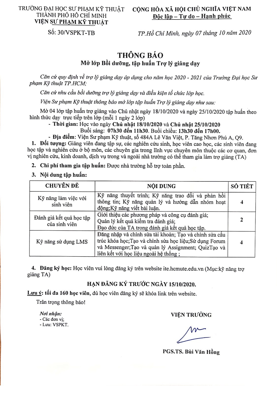 Thông báo đăng ký lớp tập huấn Trợ giảng