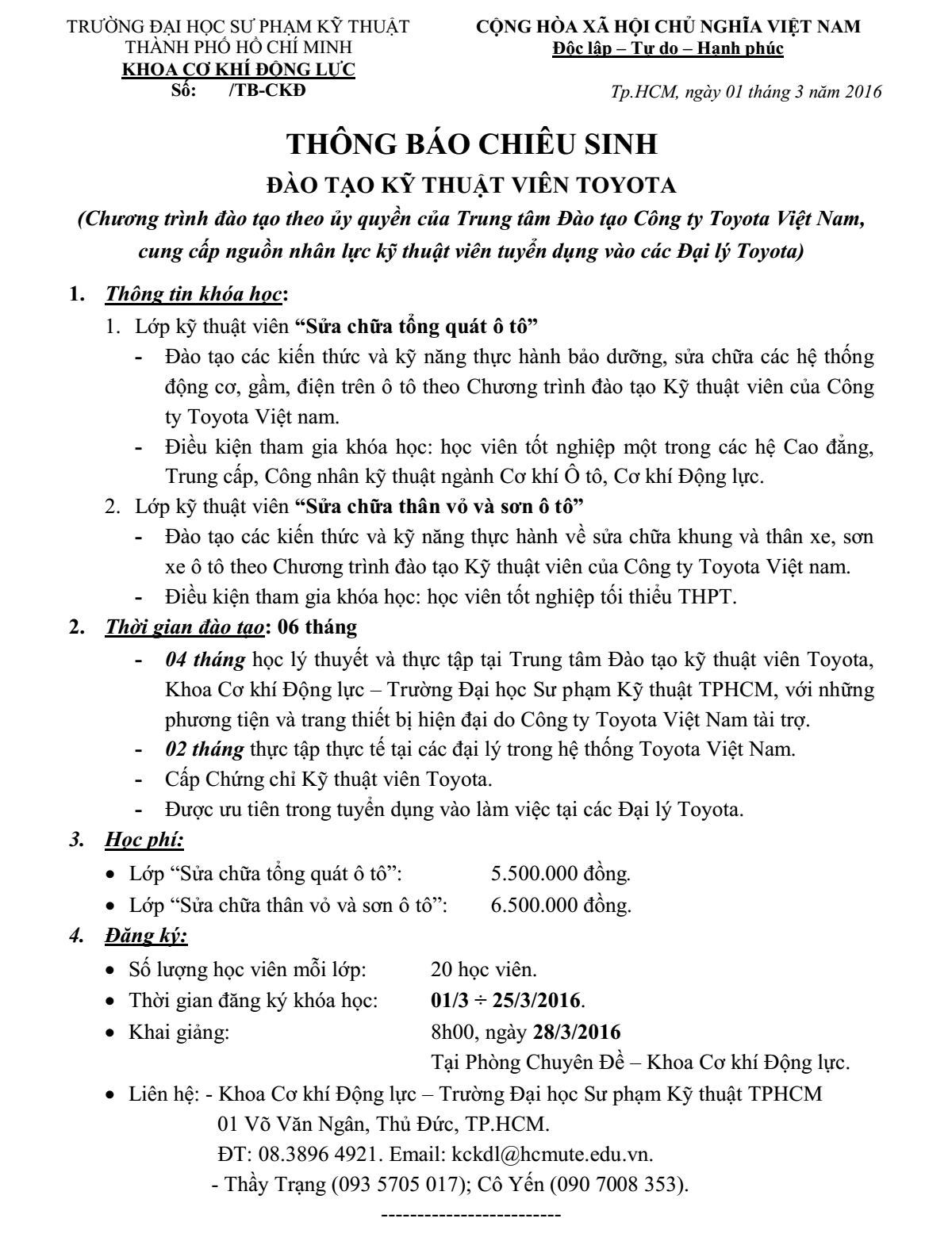 Điện thoại: (+84 - 8) 3896 4921 - 7 221 223/8340   E-mail: kckdl@hcmute.edu.vn