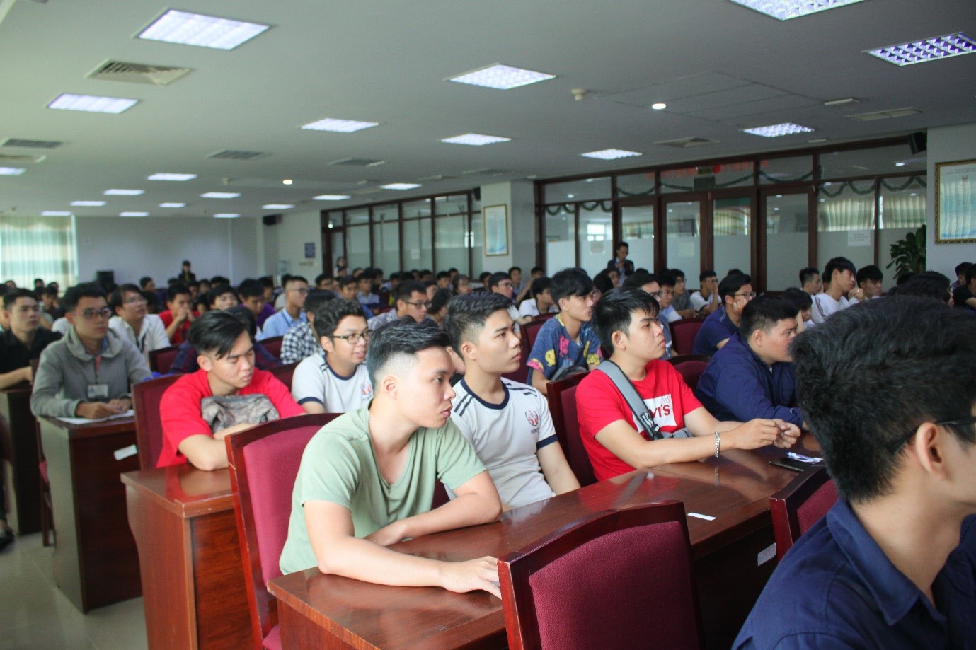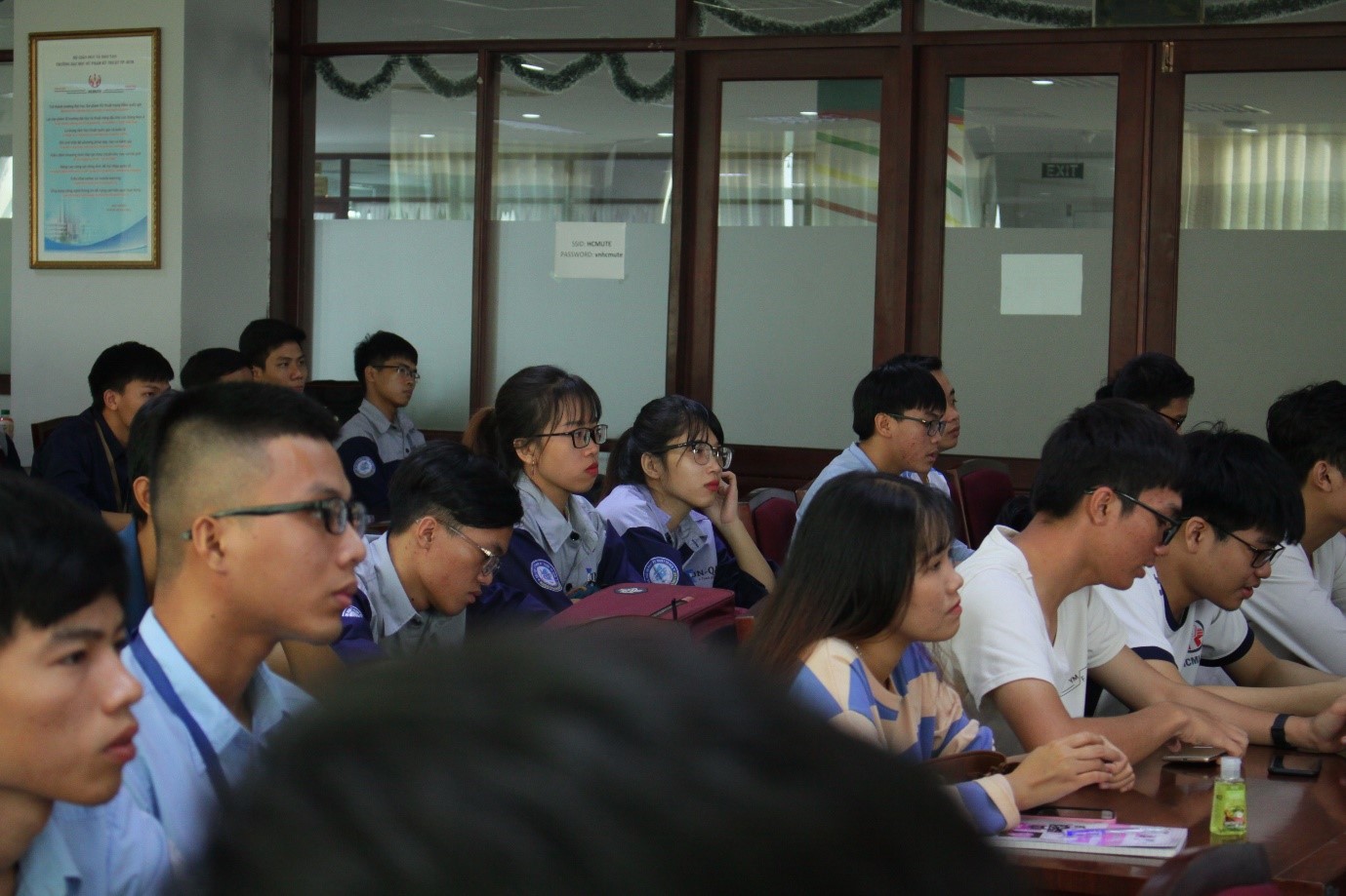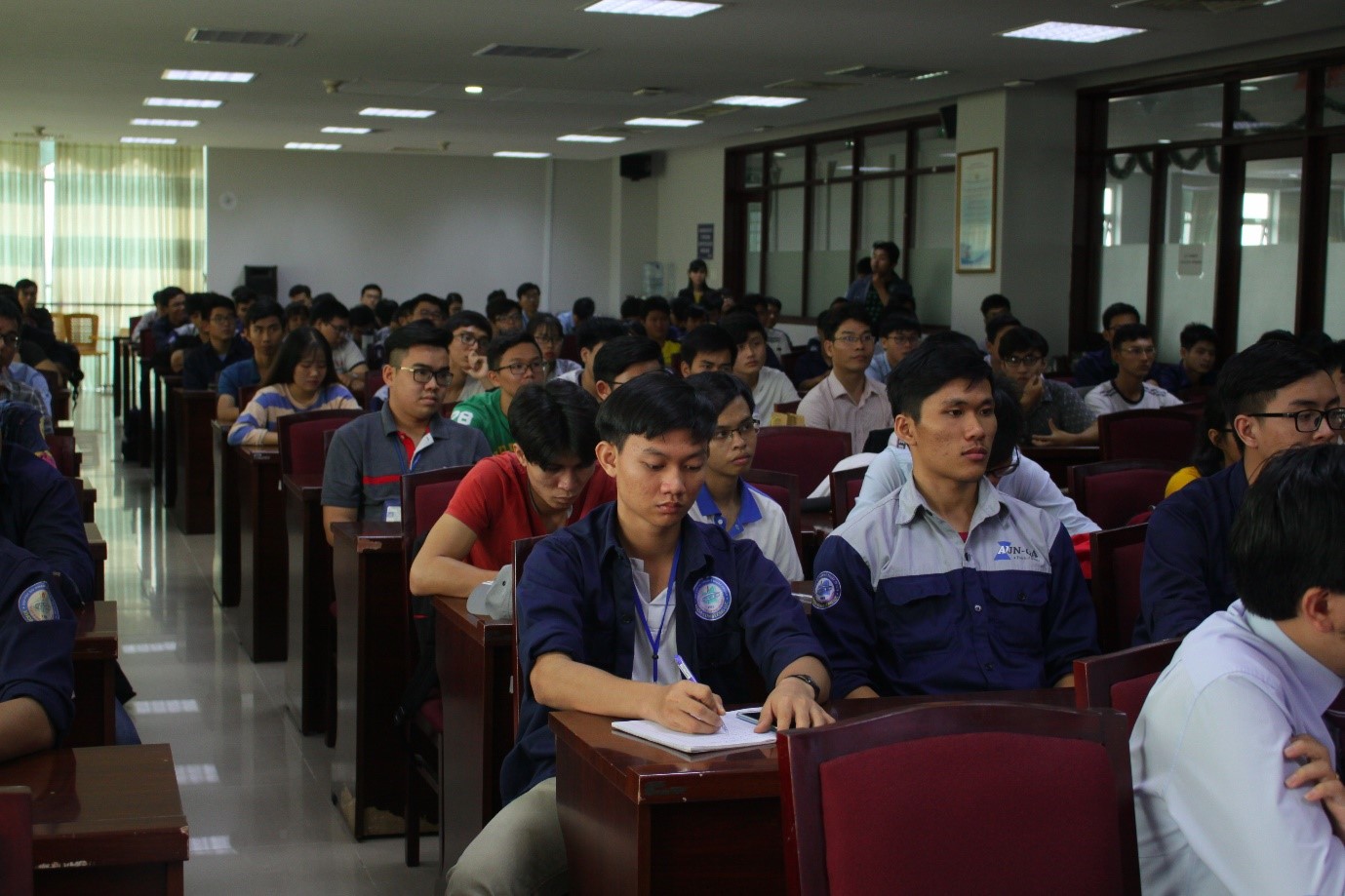 Sinh viên trong phòng họp đều rất quan tâm và chú ý lắng nghe chuyên đề này
