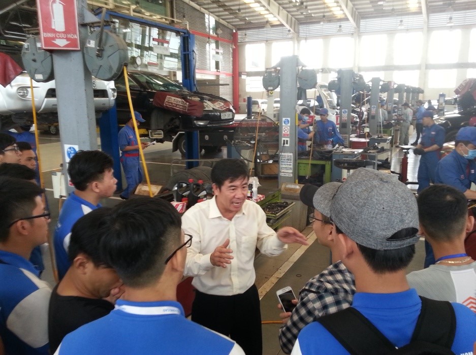 Lãnh đạo cty Toyota Biên Hòa giải thích qui trình tiếp nhận và các công đoạn sửa chửa ô tô