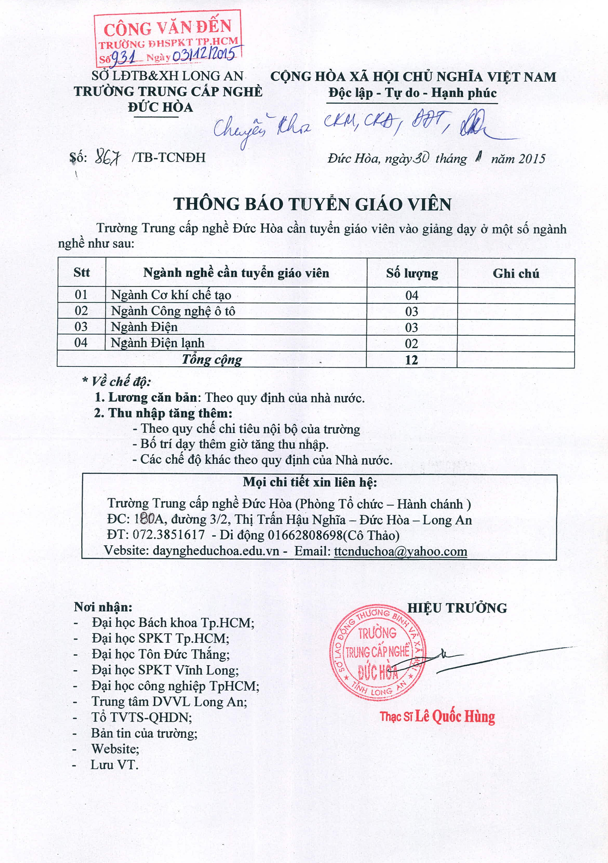 Điện thoại: (+84 - 8) 3896 4921 - 7 221 223/8340   E-mail: kckdl@hcmute.edu.vn