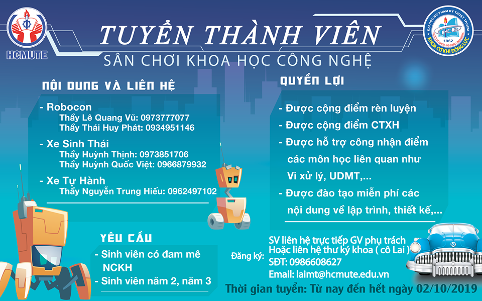 Điện thoại: (+84 - 8) 3896 4921 - 7 221 223/8340   E-mail: kckdl@hcmute.edu.vn