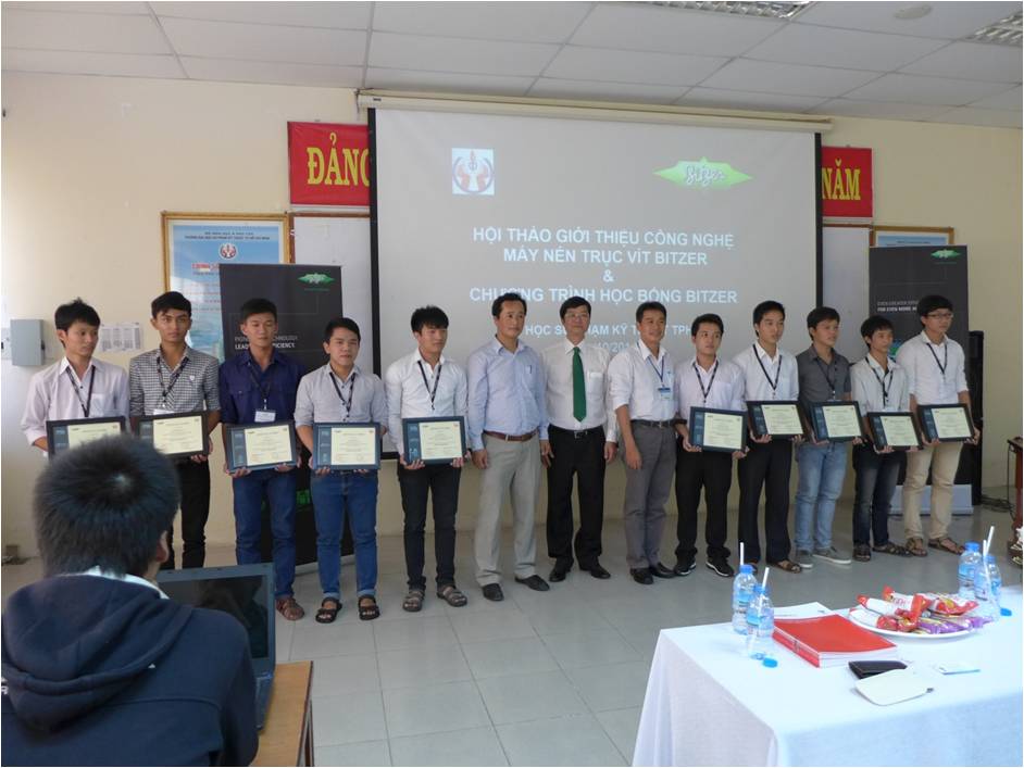 Cũng trong buổi hội thảo này Bitzer VN cũng đã trao học bổng cho 10 bạn sinh viên có thành tích xuất sắc trong học tập. Đây là niềm vinh dự, là sự cổ vũ tinh thần rất quan trọng giúp các em sinh viên có động lực hơn nữa trong học tập cũng như trong tương lai của mình.