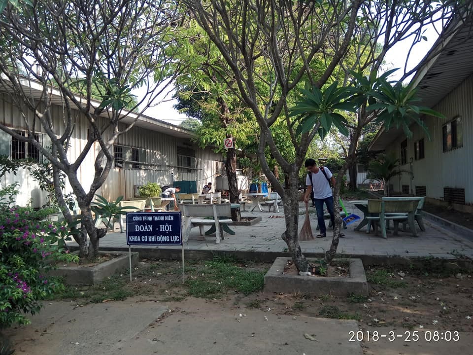Hưởng ứng Tháng Thanh niên năm 2018, chào mừng Ngày thành lập Đoàn TNCS Hồ Chí Minh , hôm nay ngày 25/03/2018, Đoàn Khoa Cơ Khí Động Lực tổ chức ngày “CHỦ NHẬT XANH” nhằm đẩy mạnh các hoạt động bảo vệ môi trường, tuyên truyền bảo vệ và phát triển bền vững tài nguyên thiên nhiên và ứng phó biến đổi khí hậu. Đây là hoạt động thiết thực nhằm hưởng ứng Thanh niên năm 2018, với sự tham gia của hơn 40 đoàn viên thanh niên (ĐVTN). Chương trình được tổ chức tại khuôn viên khoa gồm các hoạt động : thu gon rác thải, quét dọn , cắt cỏ tạo một cảnh quan đẹp cho khuôn viên của chúng ta .