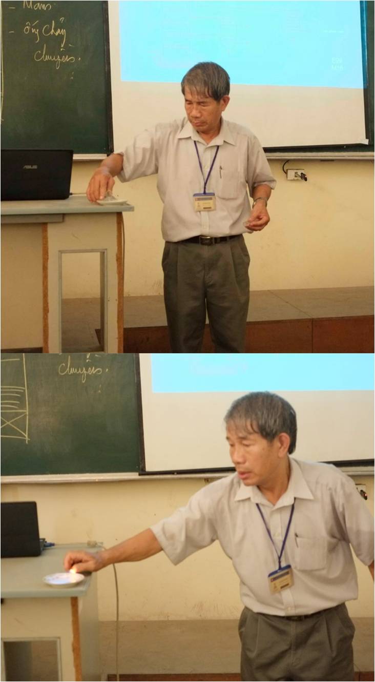 GVC. ThS Lê Kim Dưỡng đang thí nghiệm với Etanol