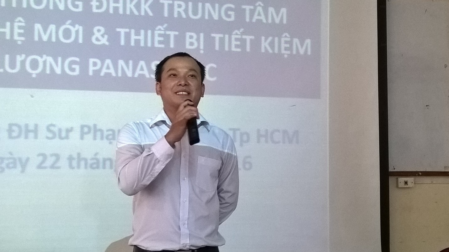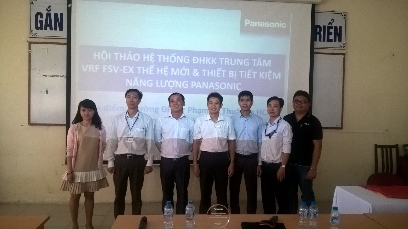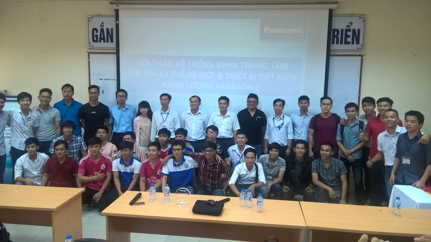 Vừa qua, vào ngày 22 tháng 04 năm 2016 tại Phòng họp V - Trường Đại học Sư phạm Kỹ thuật Tp.Hồ Chí Minh, khoa Cơ Khí Động Lực kết hợp với Công ty PANASONIC Việt Nam tổ chức Lễ trao học bổng PANASONIC và giới thiệu hệ thống điều hòa không khí (ĐHKK) trung tâm VRF FSV –EX thế hệ mới; thiết bị tiết kiệm năng lượng. Đến dự buổi hội thảo, lãnh đạo khoa: PGS.TS Đặng Thành Trung-Phó Trưởng khoa CKĐL, TS Lê Minh Nhựt-Trưởng Bộ môn Nhiệt Điện lạnh … và đại diện của Quý công ty: Ks. Đặng Minh Kế - Trưởng phòng kinh doanh dự án... và gần 150 sinh viên ngành nhiệt cùng tham dự.