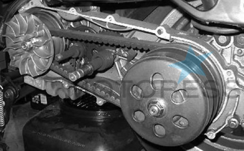 The whole driving force in this system uses a belt between two pulleys—the effective radii are variable, changing according to the speed of the scooter; one radius increasing while the other decreases, accommodating its constant belt length. These belts stretch over time and as they loosen, slip and fail to transmit power to the wheel. Belt replacement is a standard maintenance task of the CVT powered motorbike.