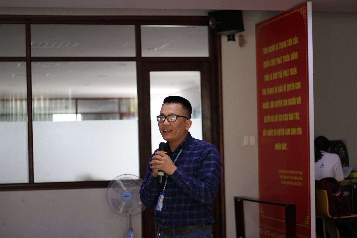 Anh Nguyễn Bá Nghị - Trưởng bộ phận thiết kế Điều hòa không khí trình bày những giải pháp công nghệ tiên tiến nhất của Samsung trong lĩnh vực điều hòa không khí