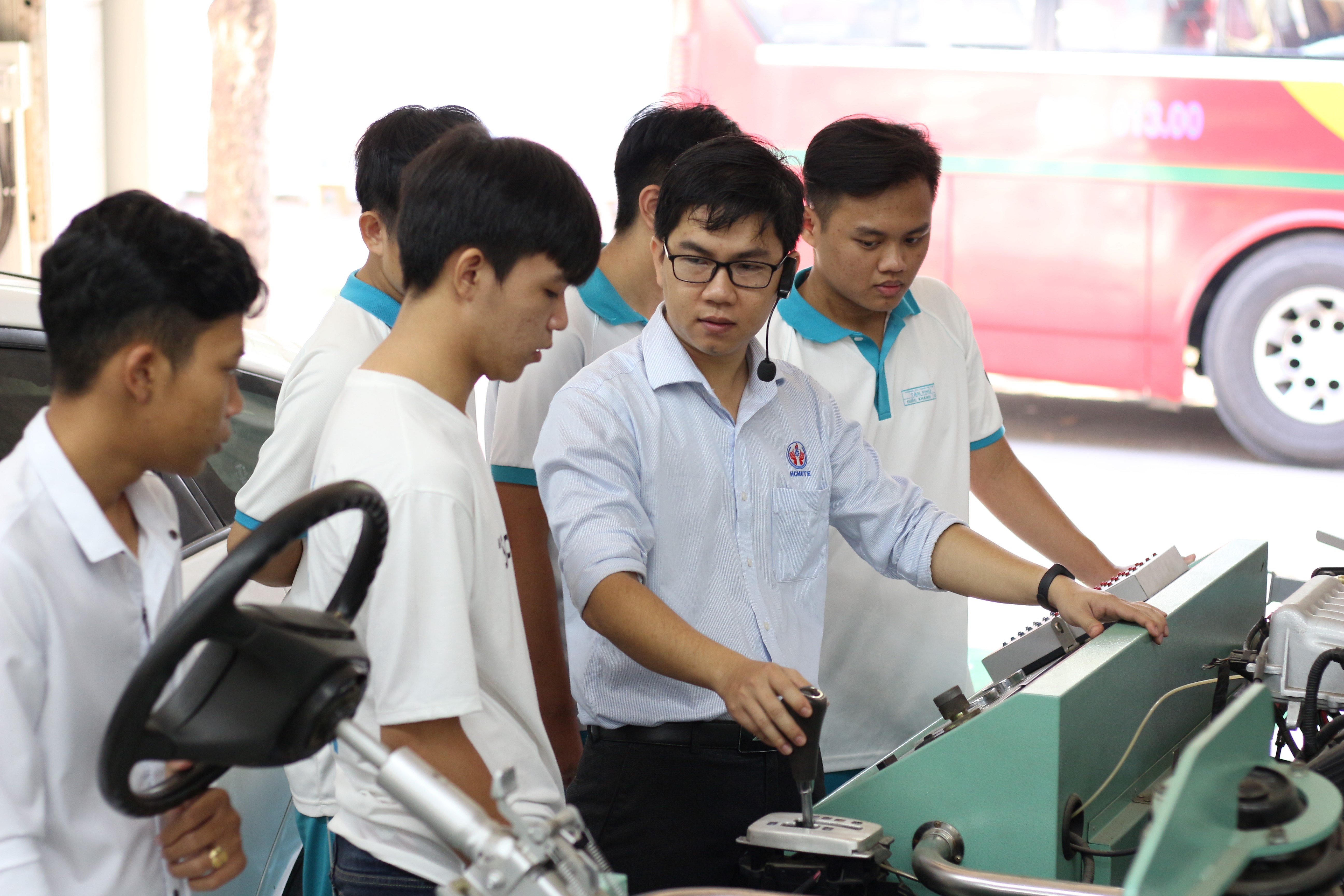 CÁC BẠN SINH VIÊN ĐƯỢC GIẢNG VIÊN CỦA KHOA GIỚI THIỆU VỀ CÁC THIẾT BỊ TRONG XƯỞNG