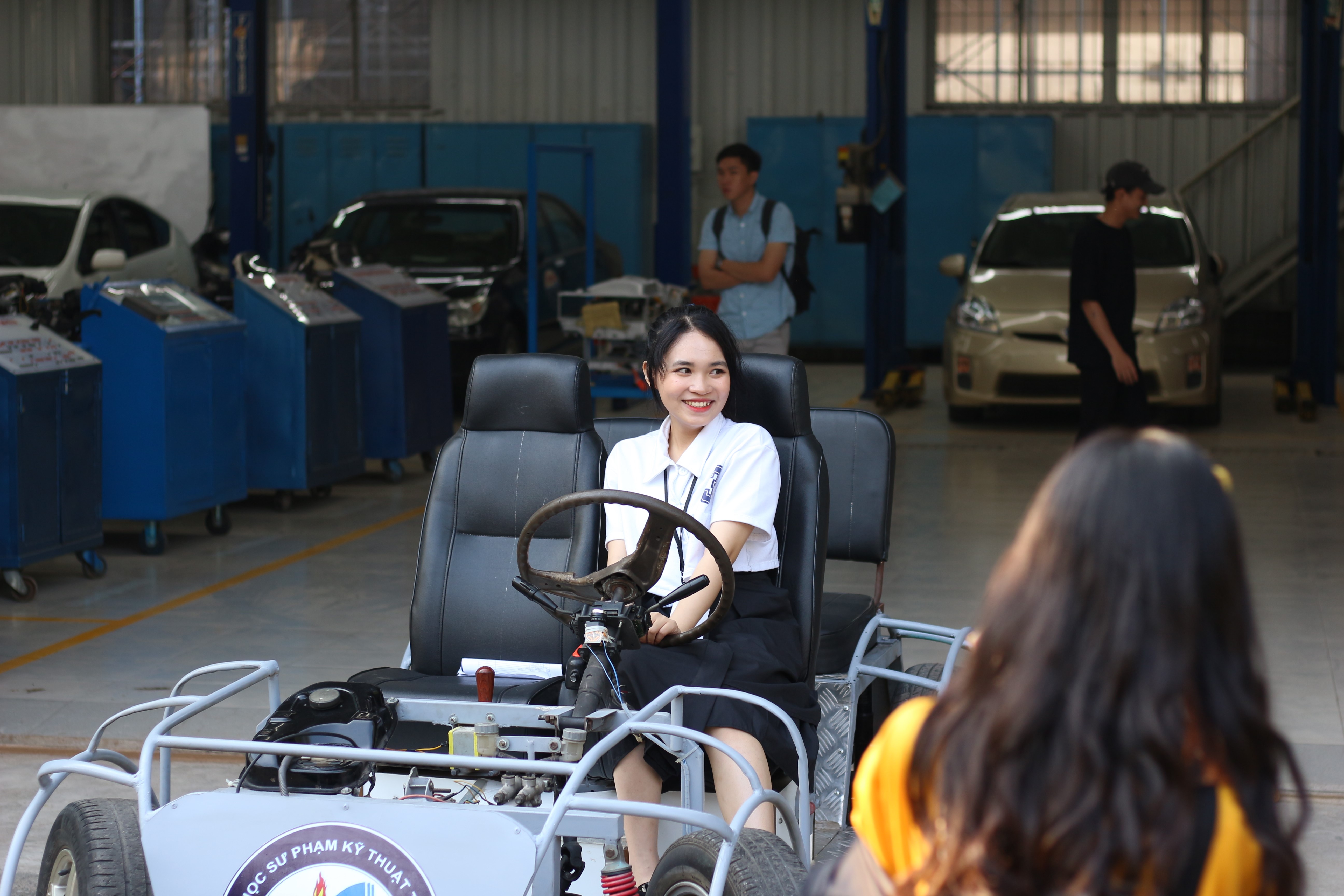 Không những thế, khoa còn giới thiệu tới các bạn học sinh những thành công của khoa có trong thời gian qua. Các bạn học sinh được chiêm ngưỡng chiếc xe điện được lái xung quanh trường để các bạn học sinh được chiêm ngưỡng và mở rộng tầm mắt.