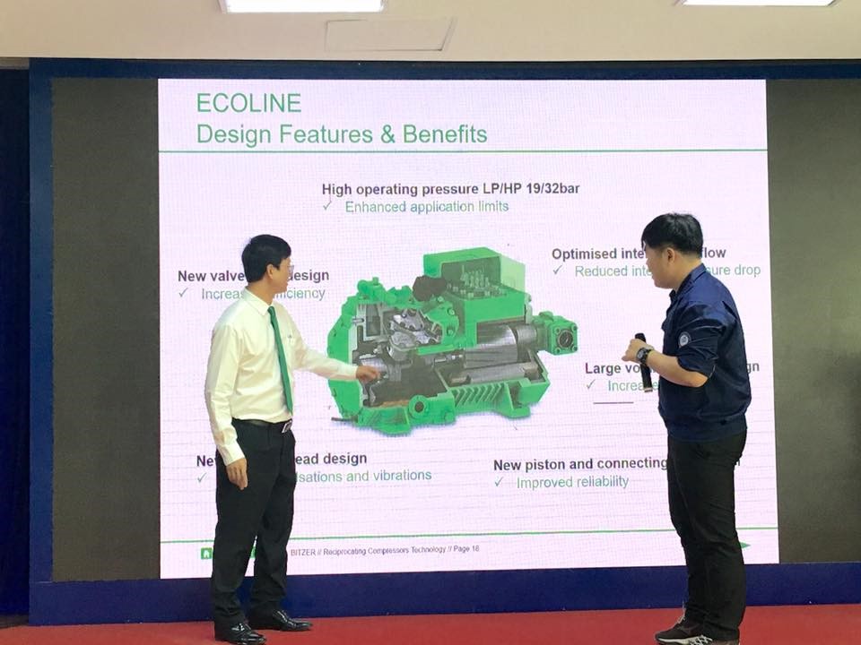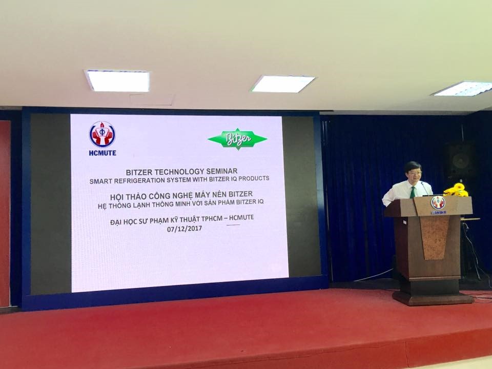 Được biết công nghệ máy nén của Bitzer được sản xuất tại Đức, là thương hiệu tiên tiến quốc tế. Vì thế, nhằm giúp sinh viên bổ sung thêm kiến thức về ngành nghề thực tế, ThS. Ngô Quang Trường – Trưởng Đại diện Bitzer Việt Nam đã giới thiệu cho giảng viên và sinh viên ngành CNKT Nhiệt – Trường Đại học Sư phạm Kỹ thuật TP. HCM biết được sản phẩm mới, nắm bắt tính năng, công dụng và tính ưu việt của sản phẩm hệ thống lạnh thông minh với sản phẩm Bitzer IQ.