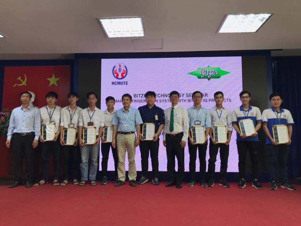 Vào sáng ngày 7/12/2017 lúc 9h tại phòng họp 2 đã diễn ra Lễ trao học bổng và hội thảo công nghệ máy nén Bitzer cho sinh viên khoa Cơ khí Động lực và khoa Đào tạo Chất lượng cao -Trường Đại học Sư phạm Kỹ thuật TP. HCM. Đến dự buổi hội thảo có sự tham dự của ban lãnh đạo,thầy cô bộ môn đến từ khoa Cơ khí Động lực và Khoa Đào tạo Chất lượng cao và đại diện của quý công ty Bitzer Việt Nam cùng hơn 150 sinh viên của hai khoa. Về phía khoa có sự hiện diện của TS. Lê Minh Nhựt – Phó trưởng Khoa Cơ khí Động lực, PGS. TS. Đặng Thành Trung- Trưởng ngành Nhiệt Khoa đào tạo chất lượng cao, Th.S Lại Hoài Nam, giảng viên Bộ Môn Nhiệt-Điện Lạnh. Về phía Bitzer Việt Nam có ThS. Ngô Quang Trường – Trưởng Đại diện Bitzer Việt Nam và một số anh chị trong công ty Bitzer Việt Nam.