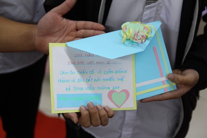 Mở đầu của chương trình là cuộc thi “Cánh thiệp tri ân”, các sinh viên tự tay thiét kế và làm những tấm thiệp mang những lời yêu thương để dành tặng thầy cô.