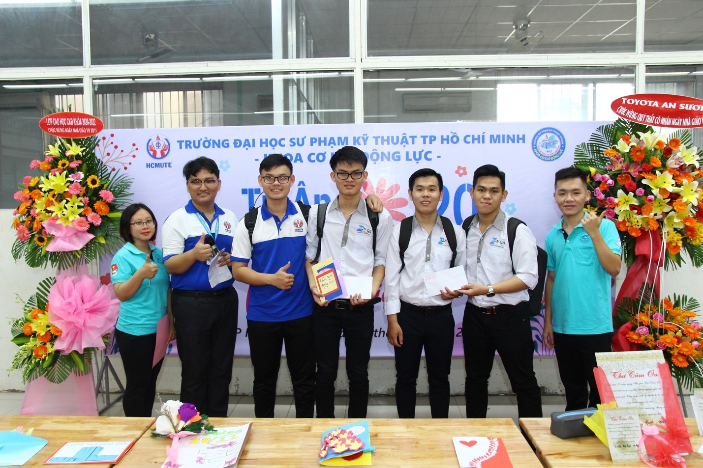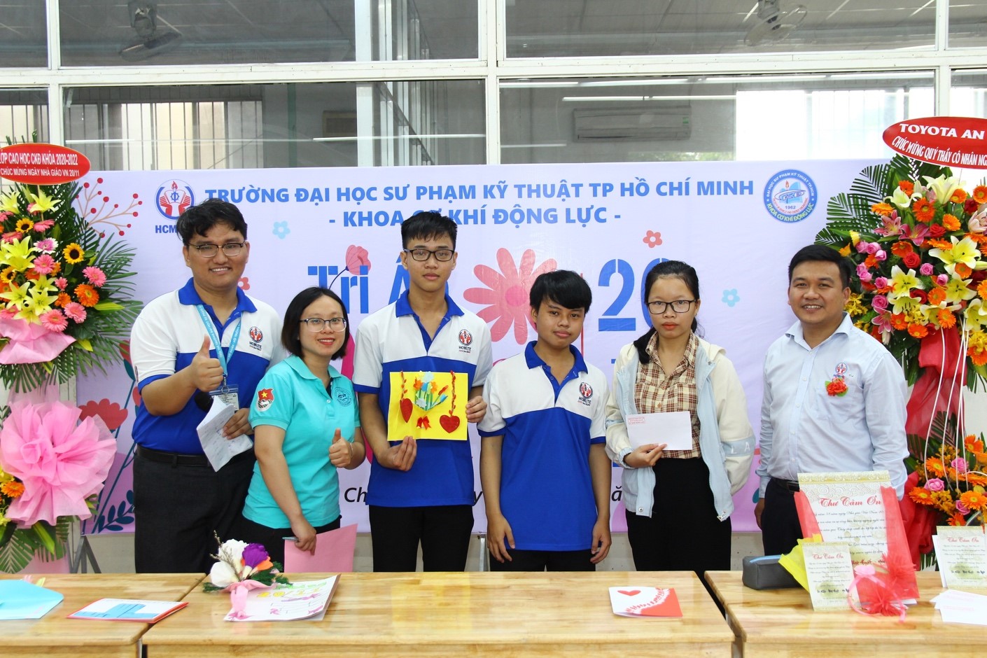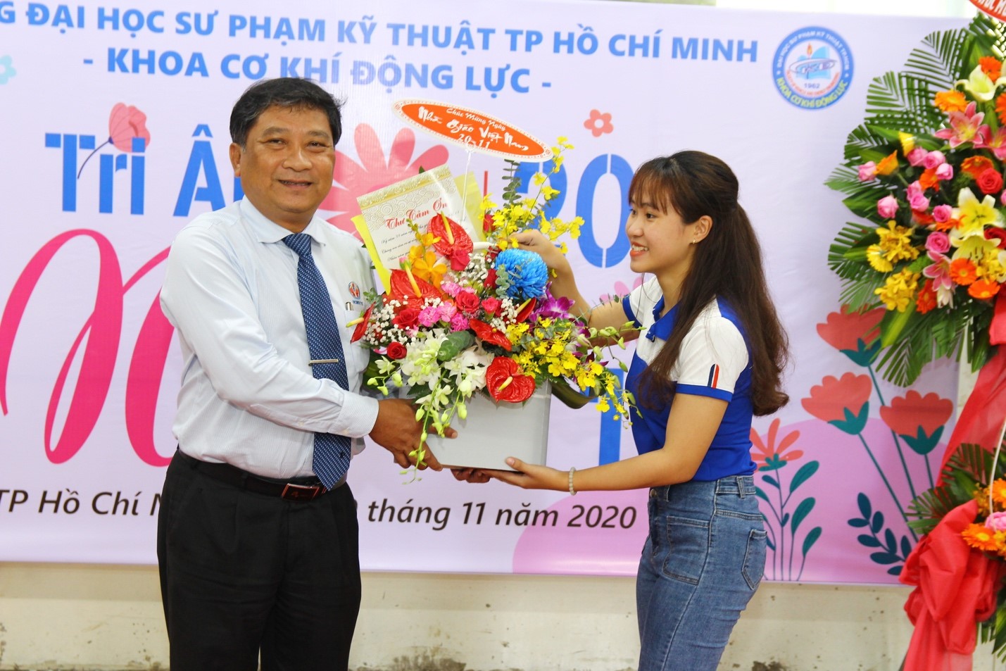 Các sinh viên tặng lãng hoa đến Ban chủ nhiệm khoa nhân ngày nhà giáo Việt Nam
