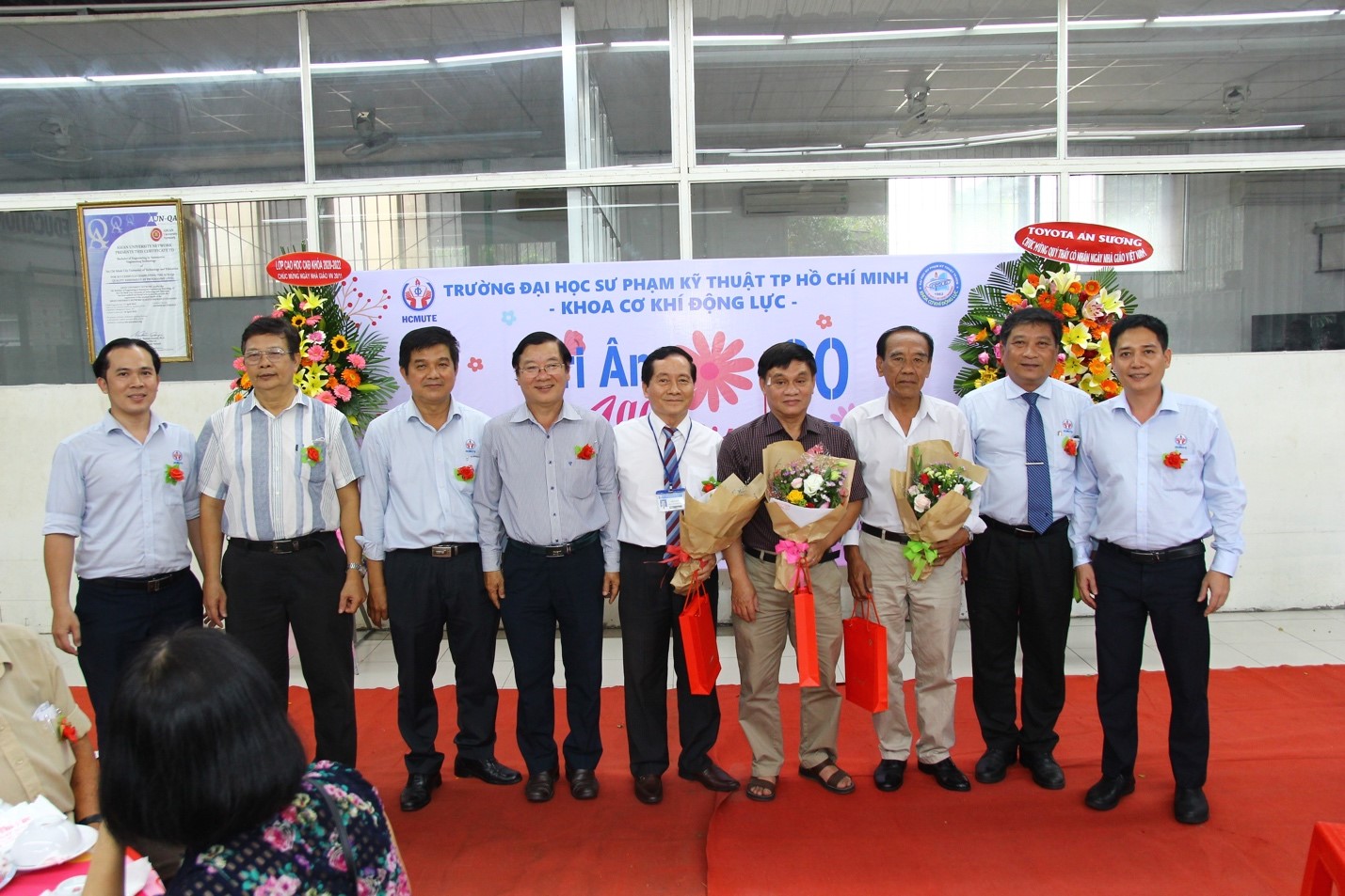 Tham dự chương trình có sự góp mặt của các thầy cô là PGS.TS Đỗ Văn Dũng Hiệu trưởng trường Đại học Sư phạm Kỹ thuật Tp. HCM, TS Lê Hiếu Giang phó hiệu trưởng, các doanh nghiệp là cựu sinh viên, cùng các thầy cô là nguyên lãnh đạo, giảng viên, cán bộ viên chức khoa Cơ khí Động lực.