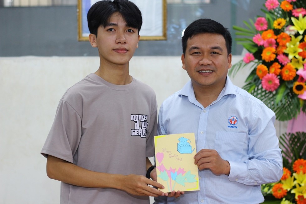 Kết thúc chương trình, sinh viên Nguyễn Minh Chiến sinh viên ngành Năng lượng Tái tạo thay mặt các bạn sinh viên phát biểu cảm ơn các thầy cô khoa Cơ khí Động lực, các thầy cô đã có những bài giảng hay và cập nhật kiến thức khoa học hiện đại đến với các sinh viên và chúc các thầy cô luôn mạnh khỏe để chèo lái được nhiều con đò cập bến.