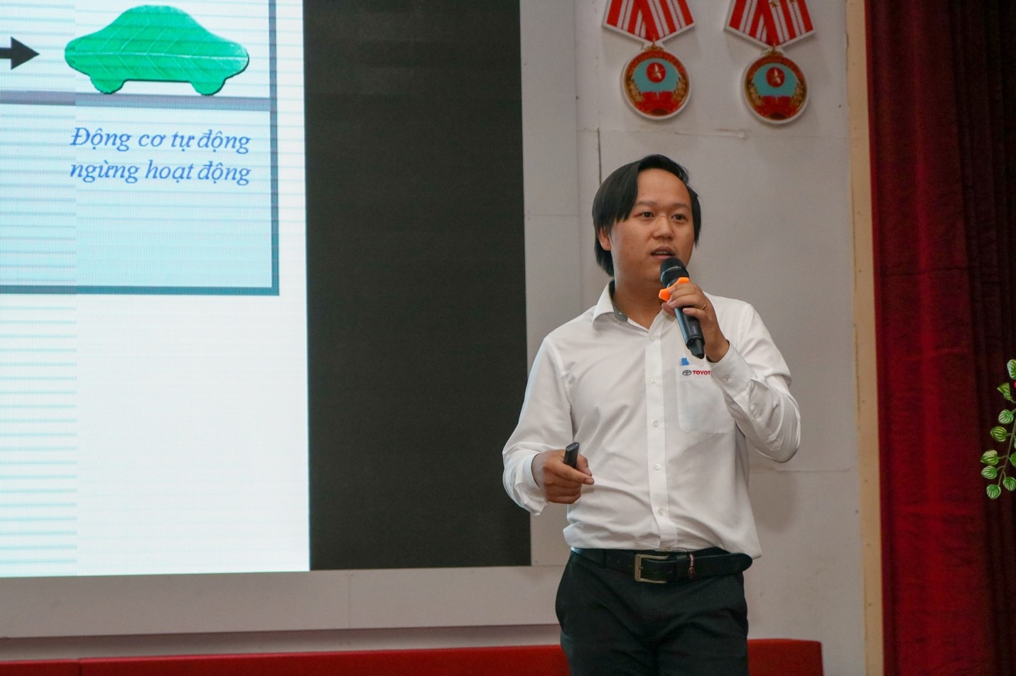 Tiếp theo là phần báo cáo của anh Trịnh Thanh Tuyền – Phụ trách đào tạo Toyota An Sương với công nghệ “xe lai” Hydrib, giúp các bạn sinh viên hiểu một một cách chi tiết về nguyên lí hoạt động, phân loại cũng như những lưu ý khi sử dụng và sửa chữa. Từ đó, các bạn sinh viên có thể định hướng và bắt kịp xu hướng một cách dễ dàng đối với các thế hệ xe trong tương lai.