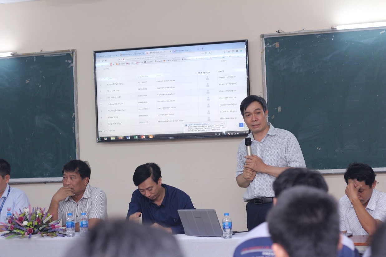 Tham dự hội nghị có Ban chủ nhiệm khoa gồm TS. Huỳnh Phước Sơn – Trưởng Khoa, TS. Nguyễn Văn Trạng – Phó trưởng khoa, TS. Lê Minh Nhựt – Phó trưởng khoa, KS Mai Thị Lai – Thư Ký Khoa, cùng giảng viên các bộ môn đến từ khoa Cơ khí Động lực.