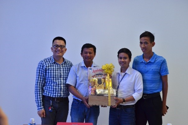 Hình ảnh giáo viên ngành Năng lượng tái tạo tặng hoa tri ân đến Ban Giám Đốc Nhà máy.
