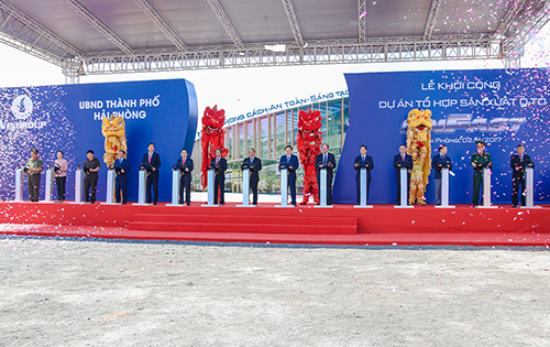 Sáng 2/9, Vingroup tổ chức lễ khởi công xây dựng tổ hợp sản xuất ôtô VinFast tại xã đảo Đồng Bài (Cát Hải, Hải Phòng) với quy mô 335 ha, sản xuất ôtô động cơ đốt trong, ôtô điện và xe máy điện. Tổ hợp có năm phân xưởng cần thiết của chuỗi sản xuất ôtô hoàn chỉnh gồm xưởng ép, hàn thân xe, sơn, động cơ và lắp ráp.