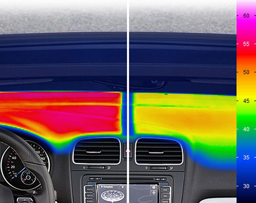 Also in the pipeline is an infrared (IR) reflecting dashboard that helps negate the heat-absorbing effect of the use of dark-colored plastics necessary to reduce windshield reflections. VW is using specially developed metallic oxide pigmentation to dye the slush-molded skin of the dashboard (instead of the conventional dying technique that uses soot), to absorb UV (ultra-violet) light and NIR (near-IR).
