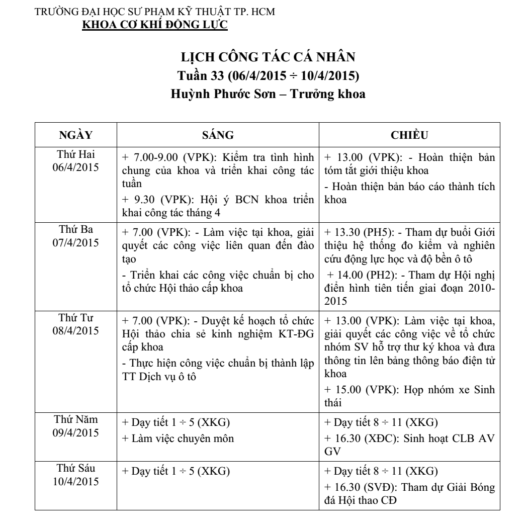 CÔNG VIỆC TUẦN 33
