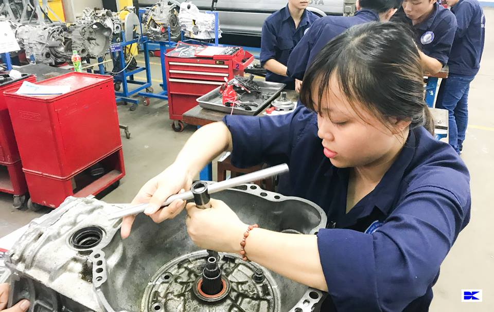 Sinh viên ngành Công nghệ Kỹ thuật ô tô thực tập tại xưởng Khung gầm